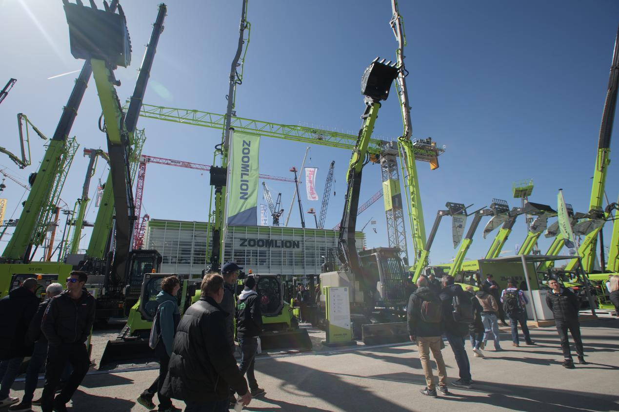 ▲德國寶馬展中聯重科展區客商絡繹不絕