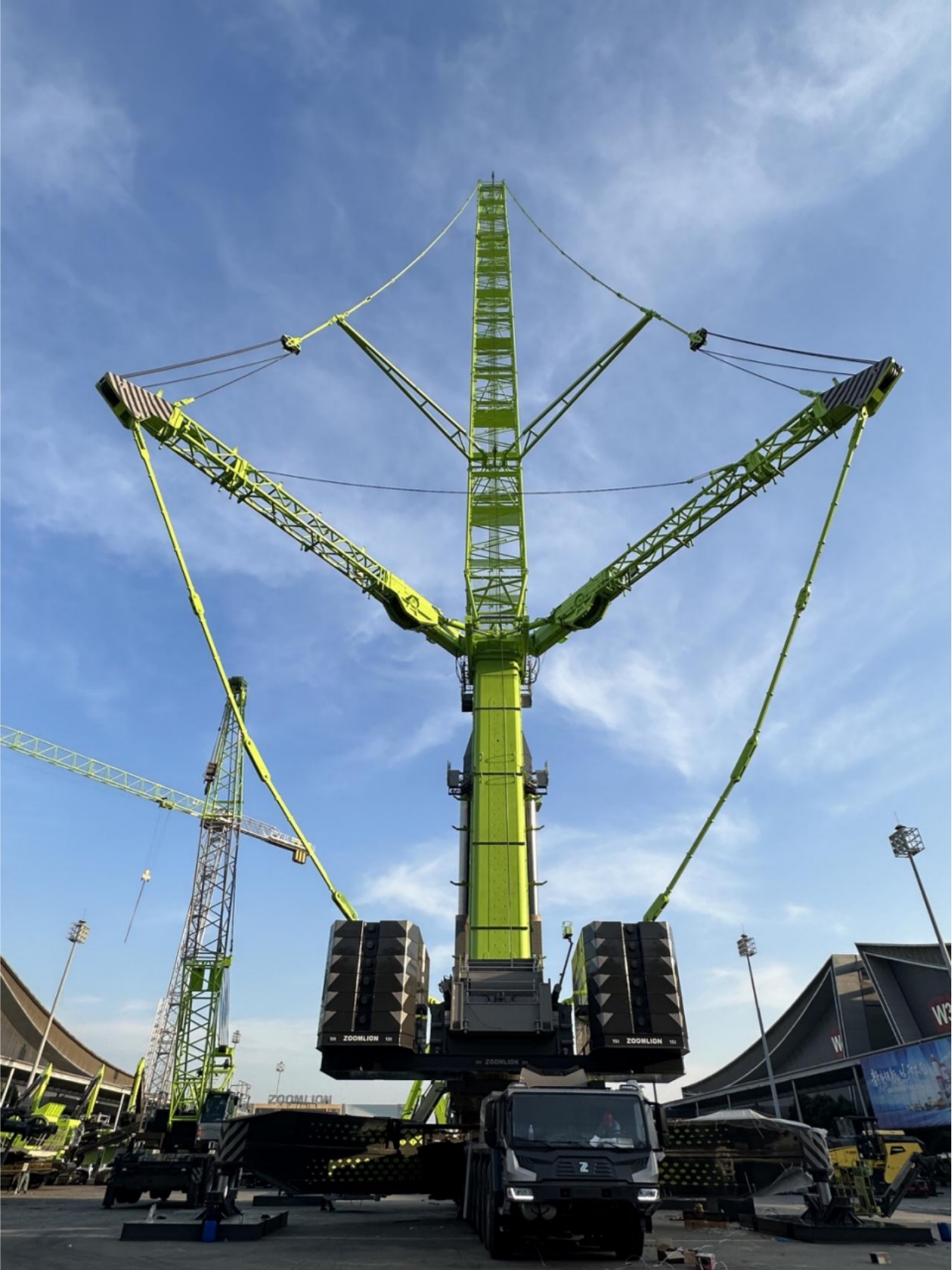 5月12日,在長沙國際會(huì)展中心中聯(lián)重科展區(qū),作為本次長沙展中最高、最大的設(shè)備,中聯(lián)重科全球最大噸位4000噸級(jí)全地面起重機(jī)已經(jīng)高高聳立在現(xiàn)場。隨著展期的臨近,全球高端裝備制造龍頭企業(yè)——中聯(lián)重科9大類、近百臺(tái)設(shè)備已基本完成進(jìn)場組裝,將全面展示中聯(lián)重科在高端化、智能化、數(shù)字化、綠色化等方面的創(chuàng)新成果。