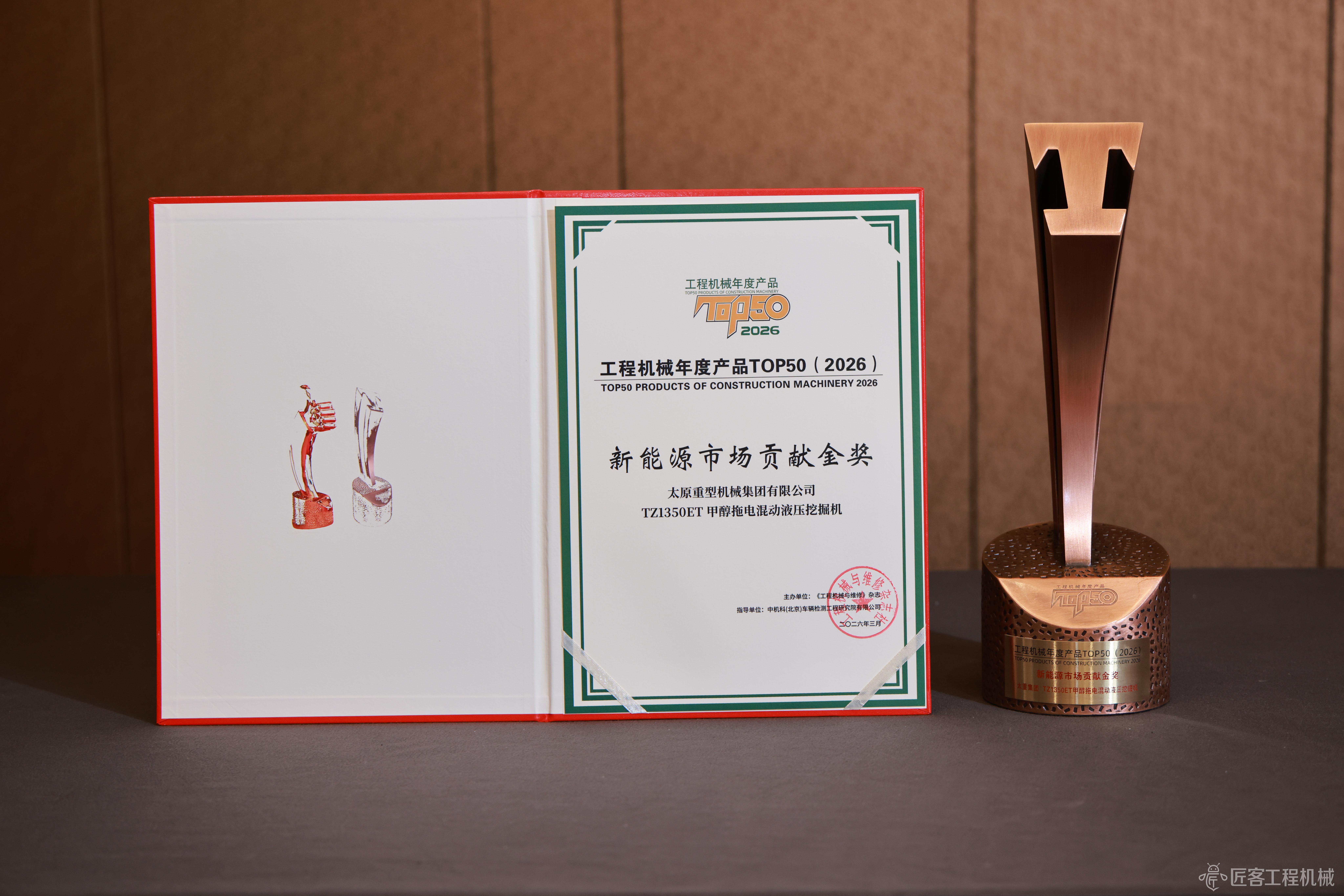 2026CM TOP50丨太重集團TZ1350ET 甲醇拖電混動液壓挖掘機榮獲2026工程機械年度產品新能源市場貢獻金獎