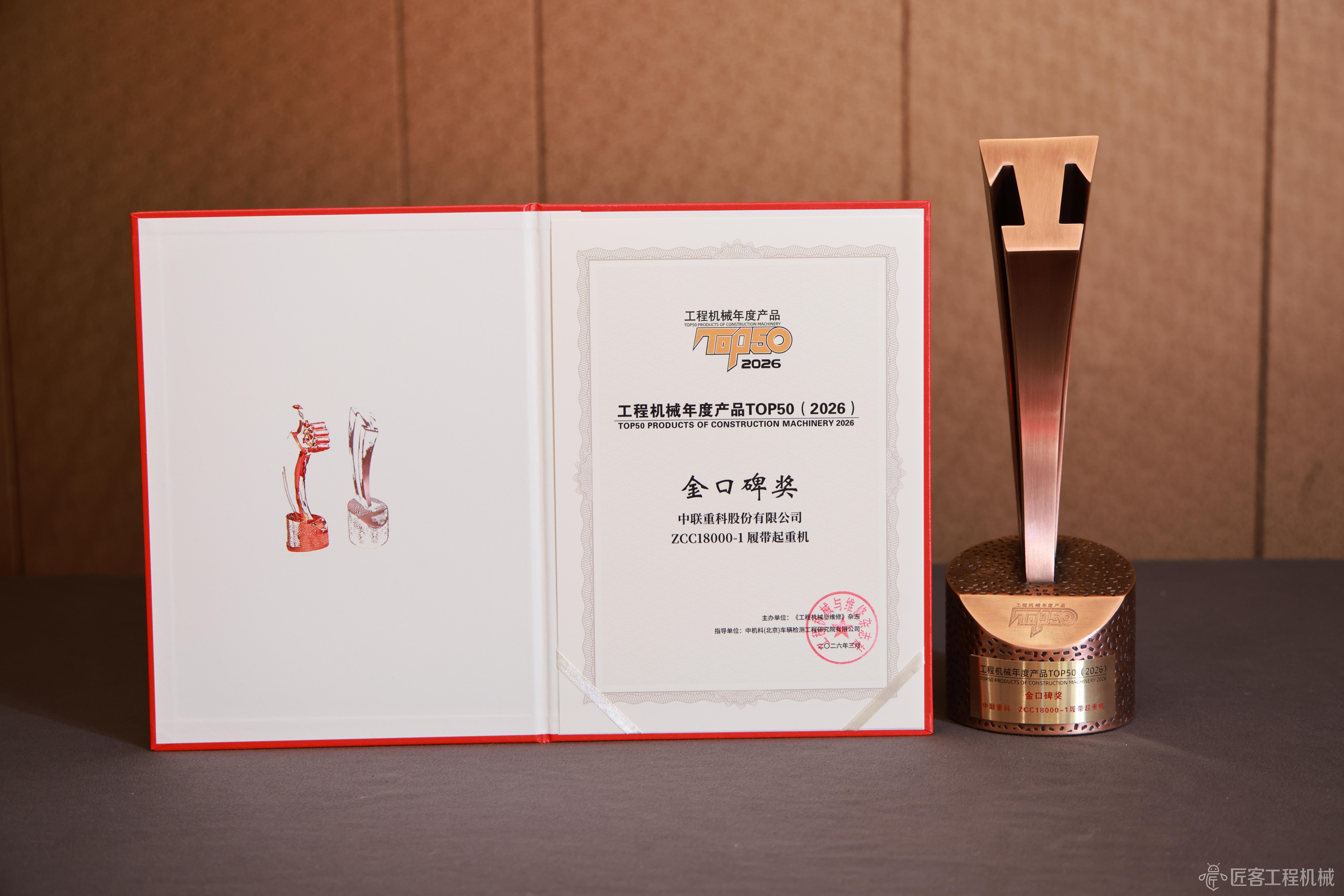 2026CM TOP50丨中聯重科ZCC18000-1履帶起重機榮獲2026工程機械年度產品金口碑獎