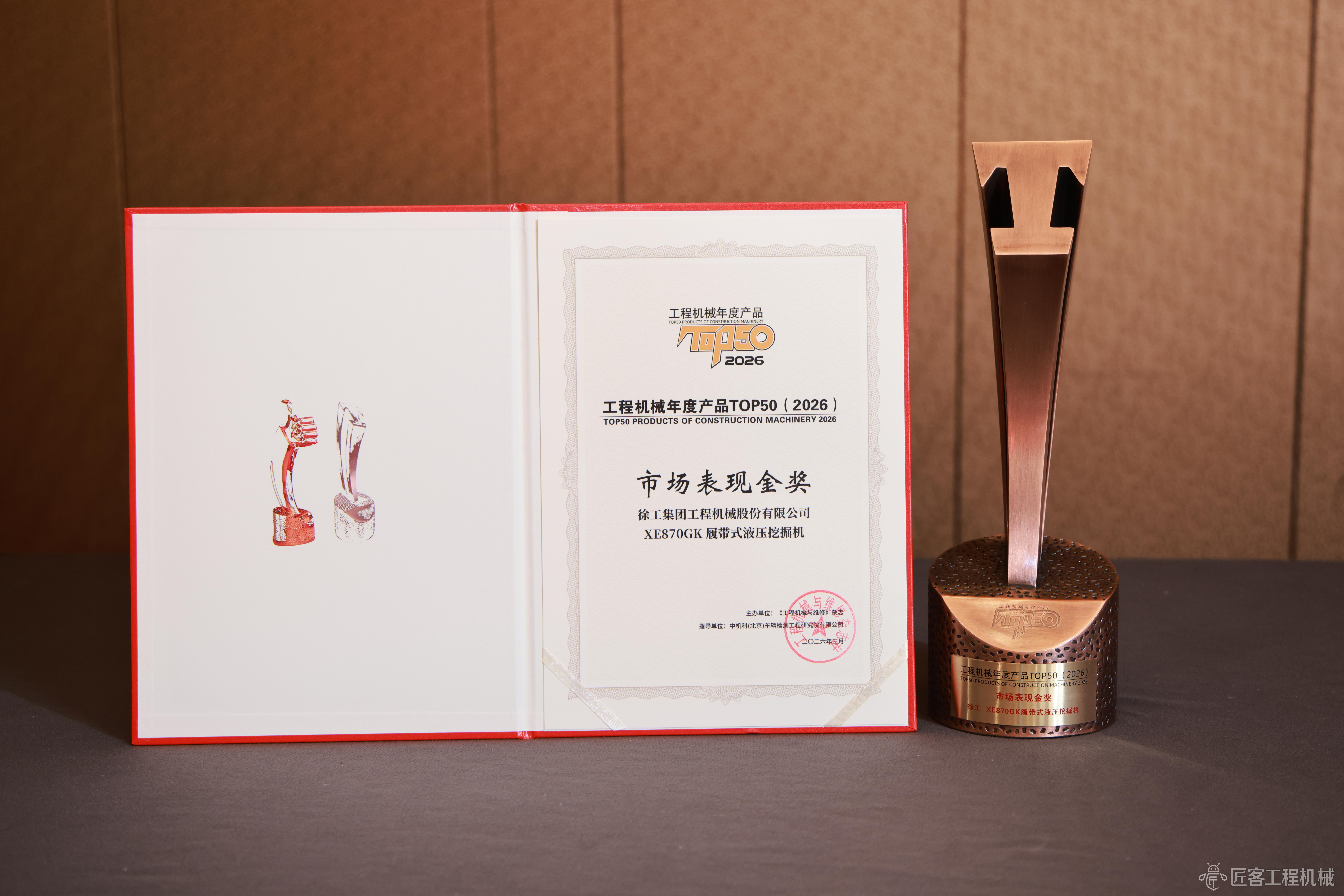 2026CM TOP50丨徐工XE870GK履帶式液壓挖掘機榮獲2026工程機械年度產品市場表現金獎