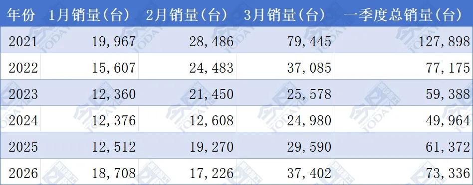 2026年一季度,我國挖掘機累計銷量達到73336臺,相比2025年同期的61372臺,實現了19.5%的同比增長。從歷史數據來看,今年一季度的銷量不僅為近四年同期最高,也進一步鞏固了自2024年以來行業逐步回暖的增長態勢。